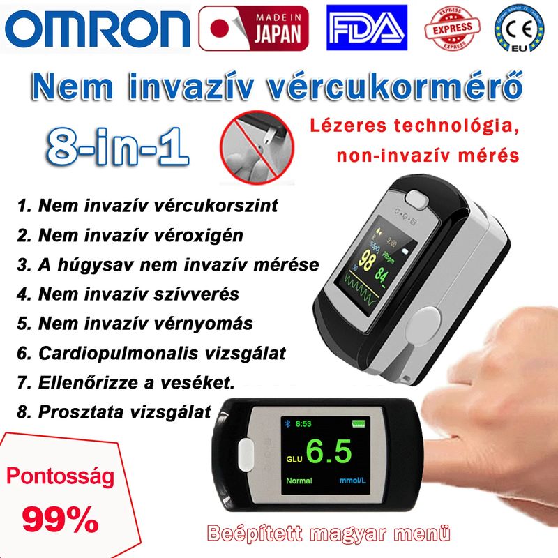 Measurement completed in 5 seconds / 99% accuracy / Painless / No blood required